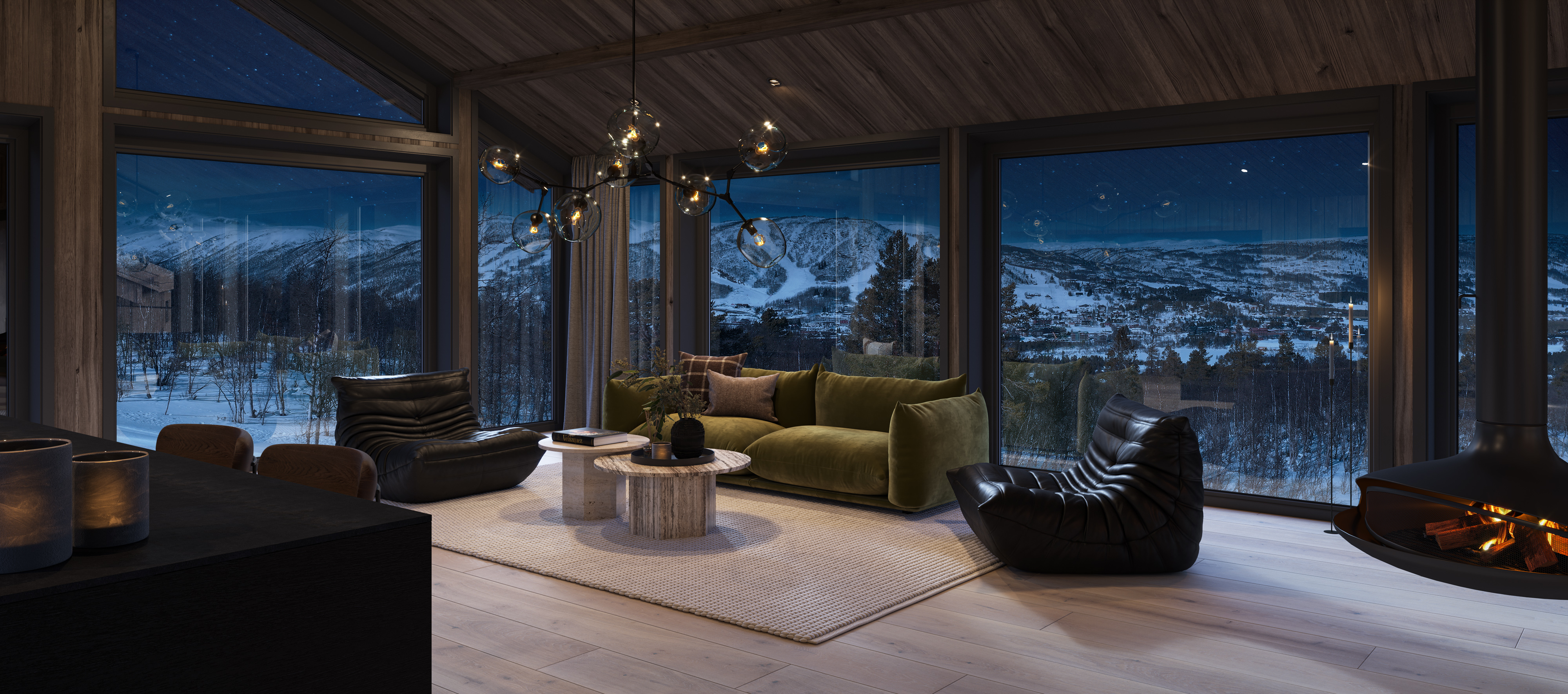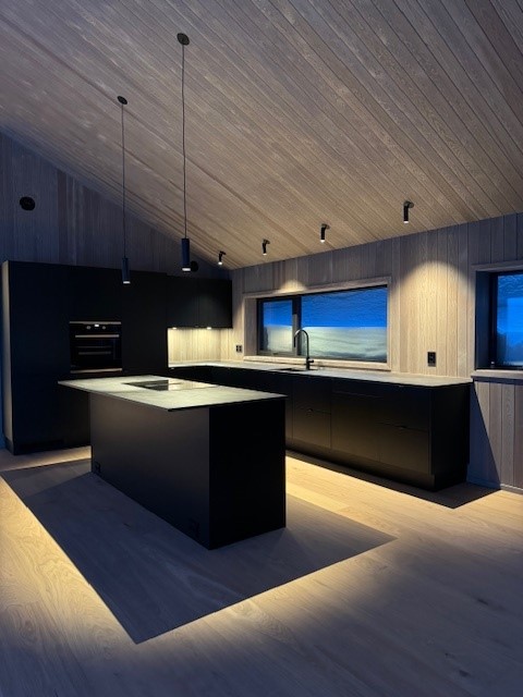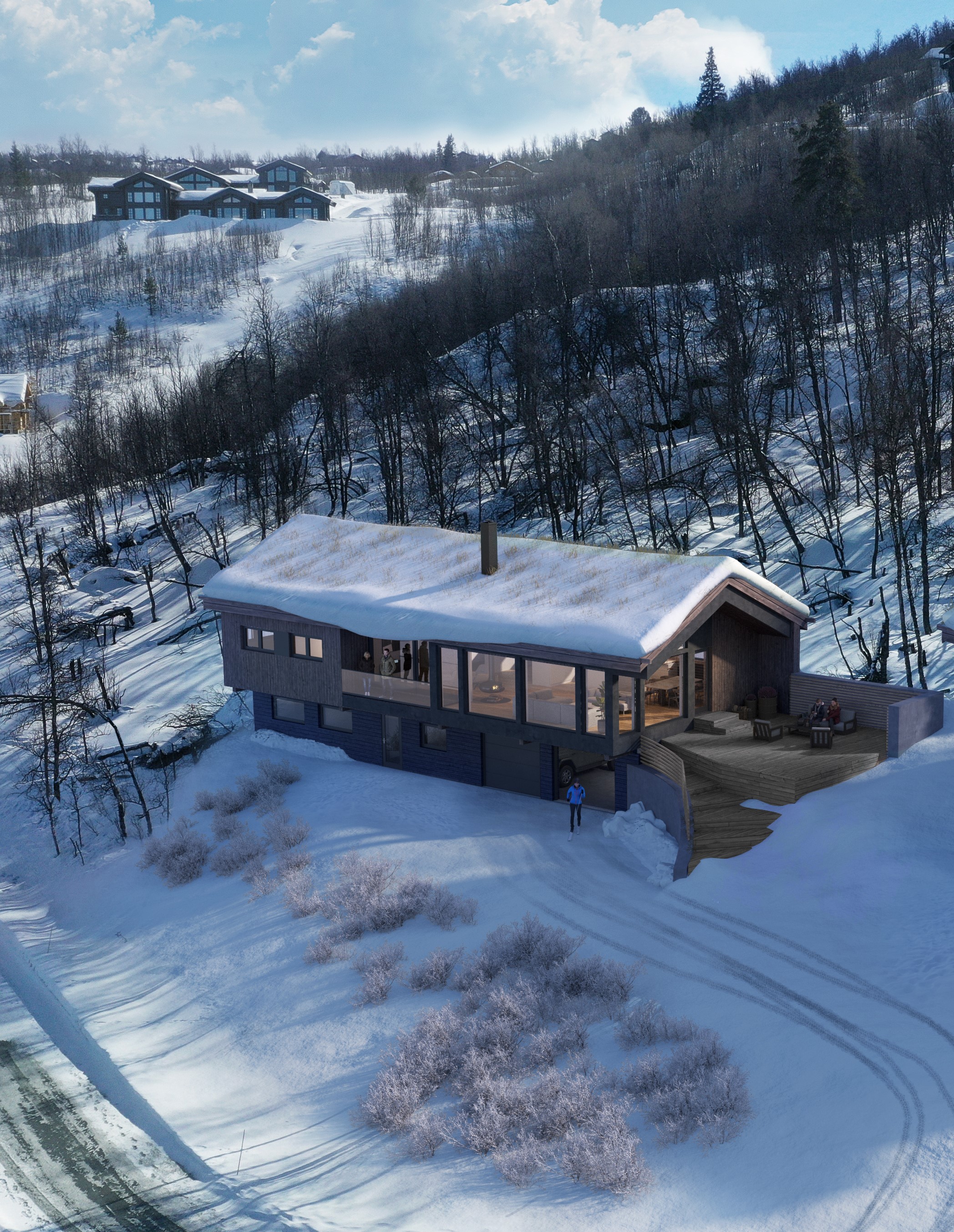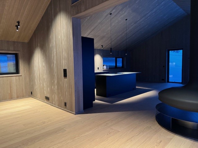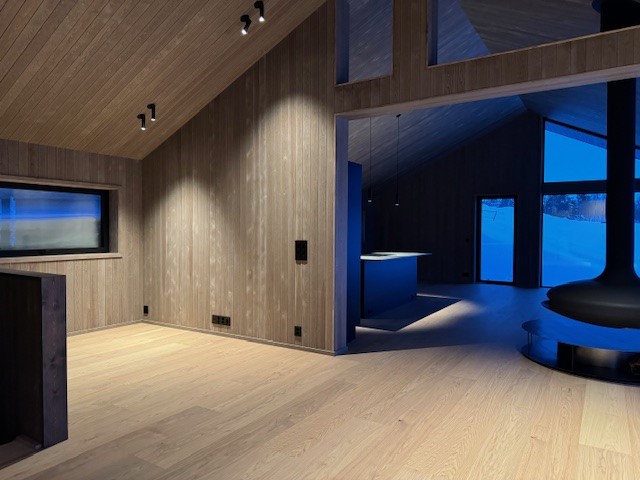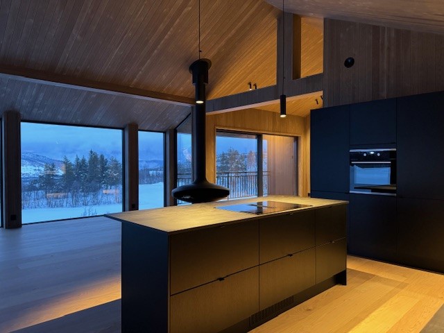 Vestavind har fått sin arkitektoniske form ut fra prinsippet om å ploge seg frem i terrenget, og med sine store vindusflater føles det som du får den vakre naturen rett inn i stua.