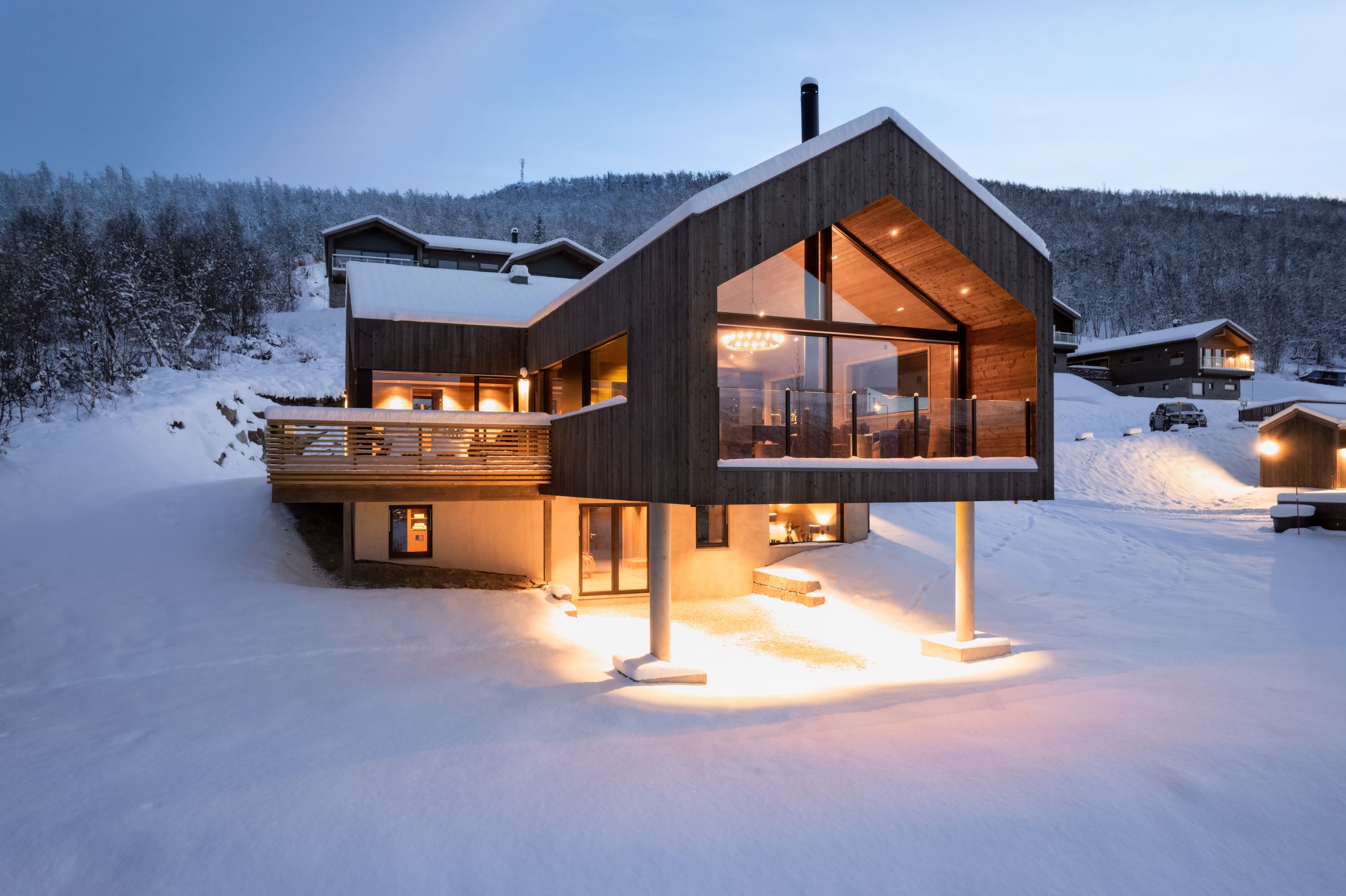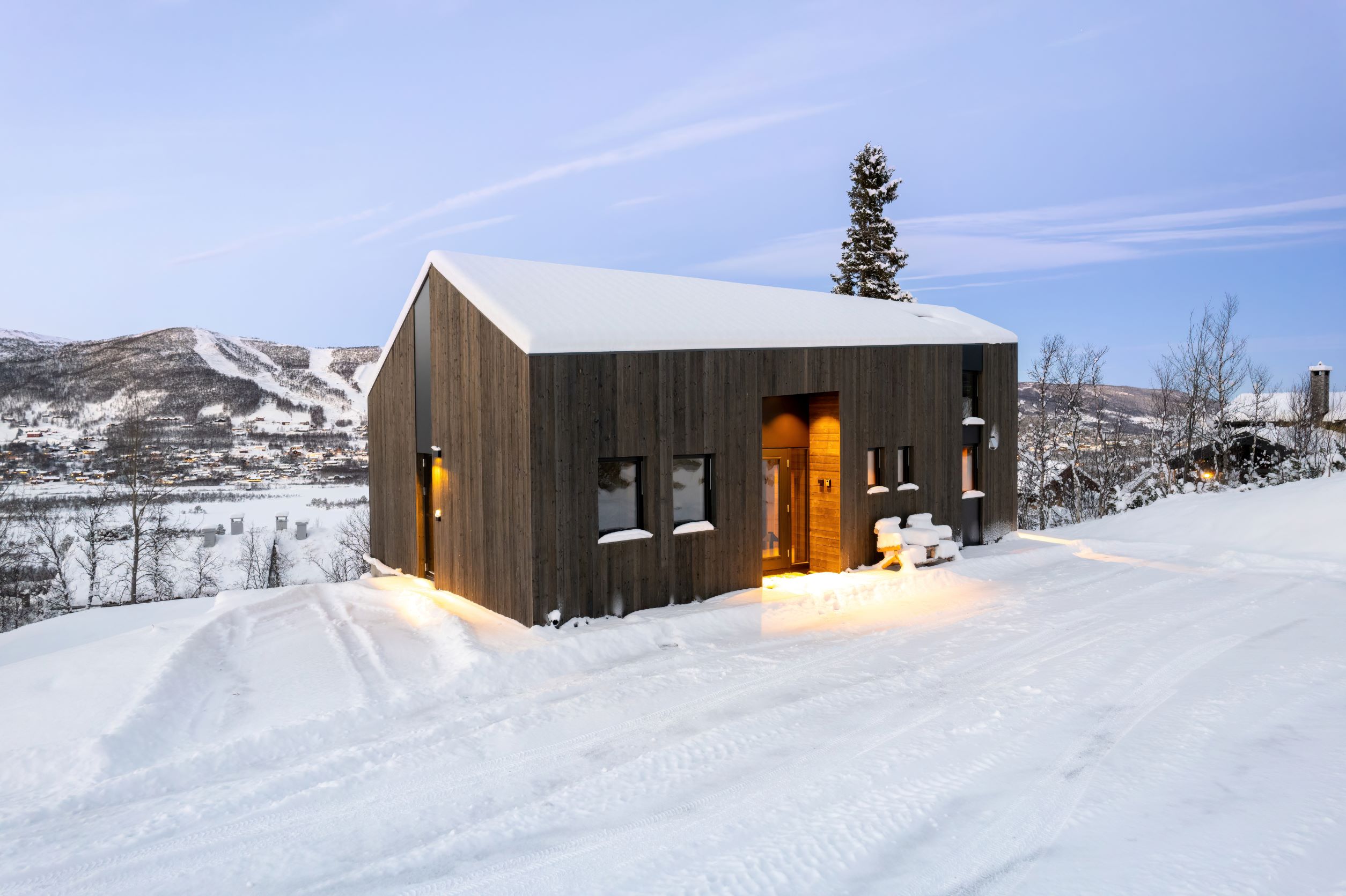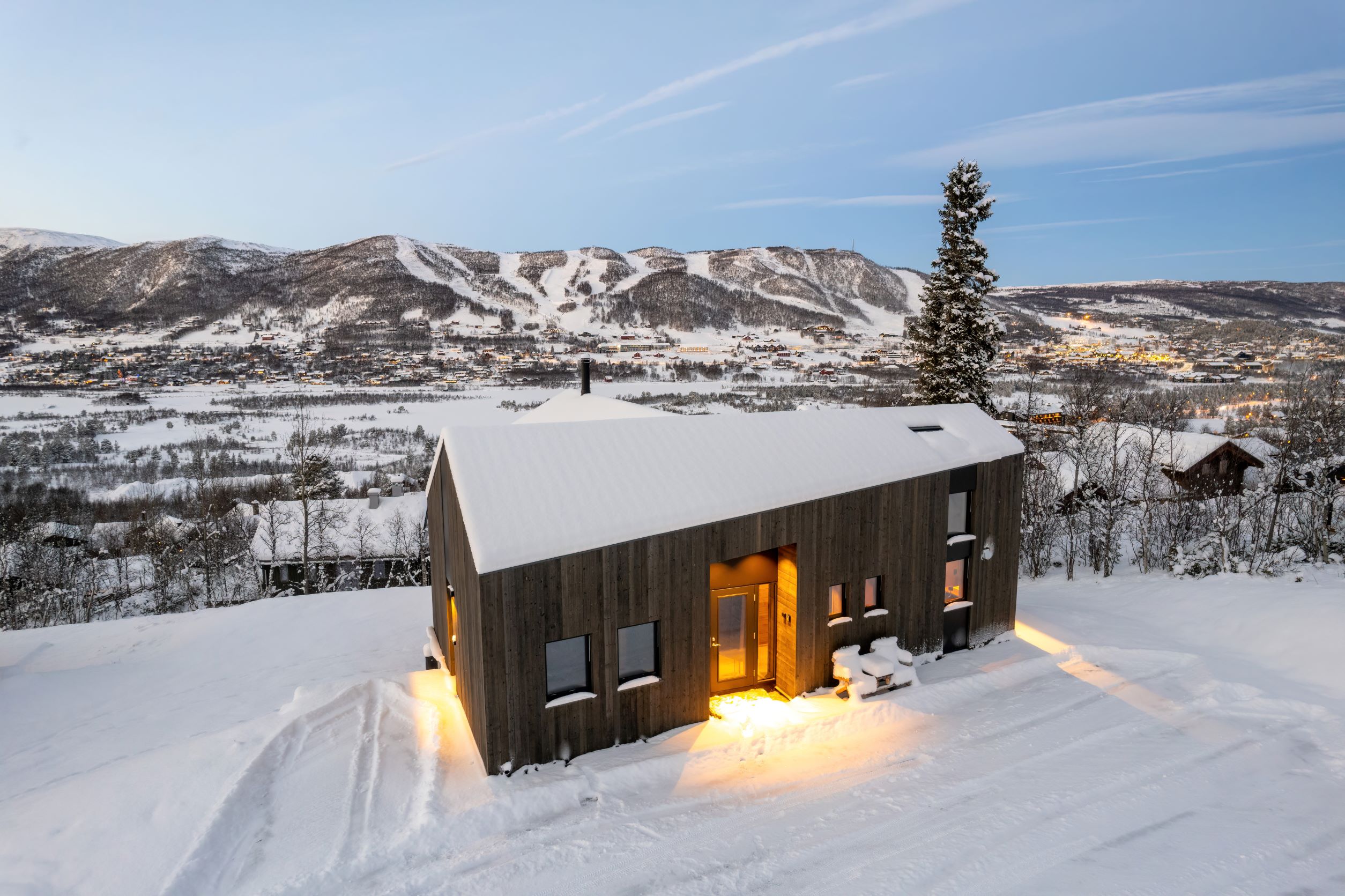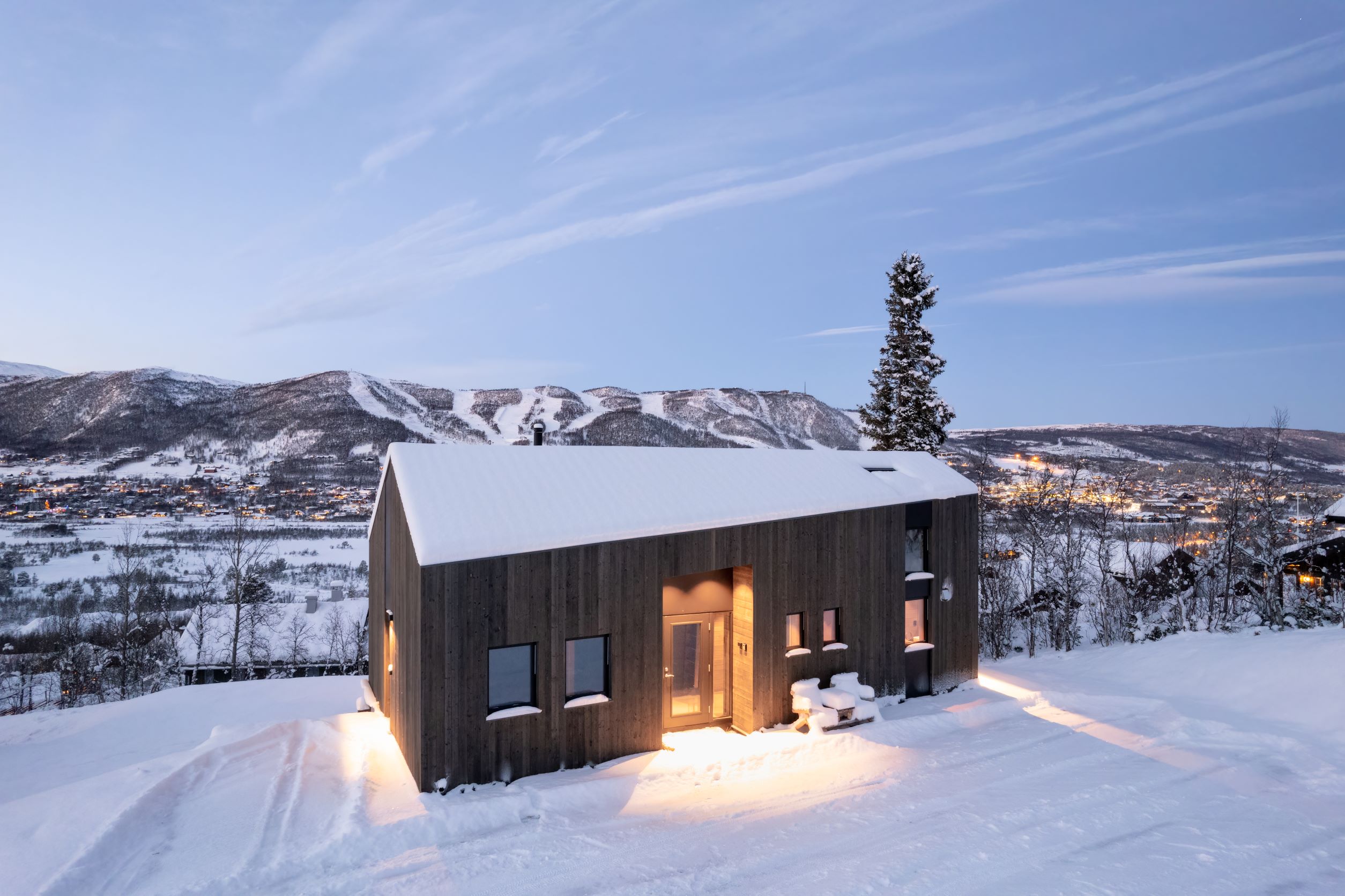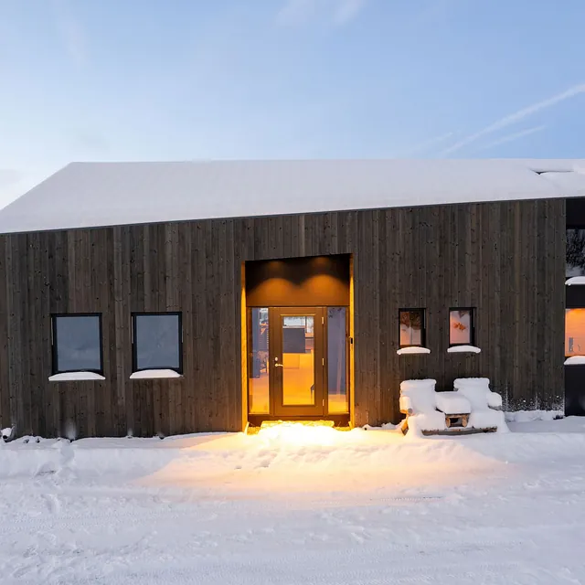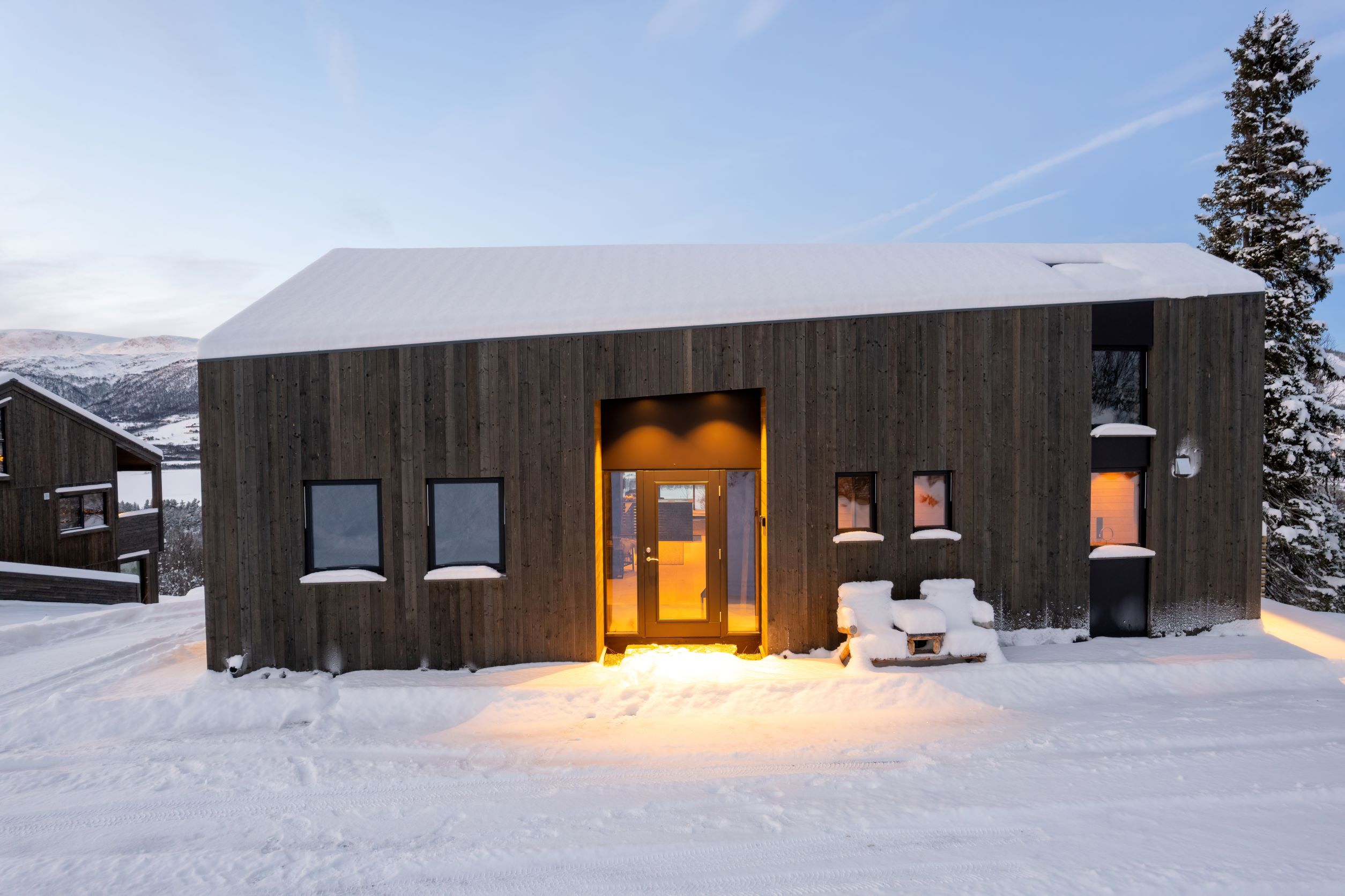 Vestavind har fått sin arkitektoniske form ut fra prinsippet om å ploge seg frem i terrenget, og med sine store vindusflater føles det som du får den vakre naturen rett inn i stua.