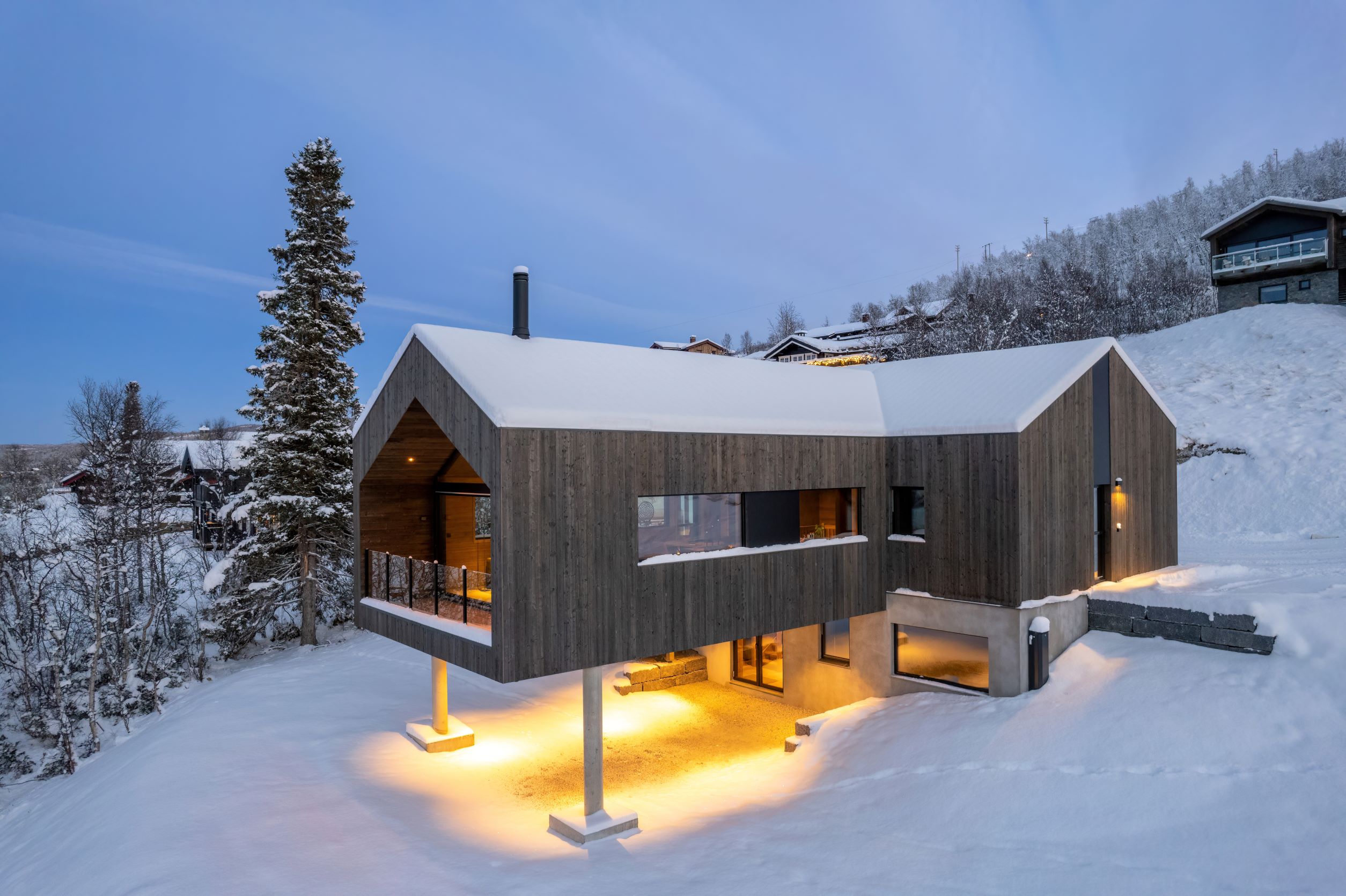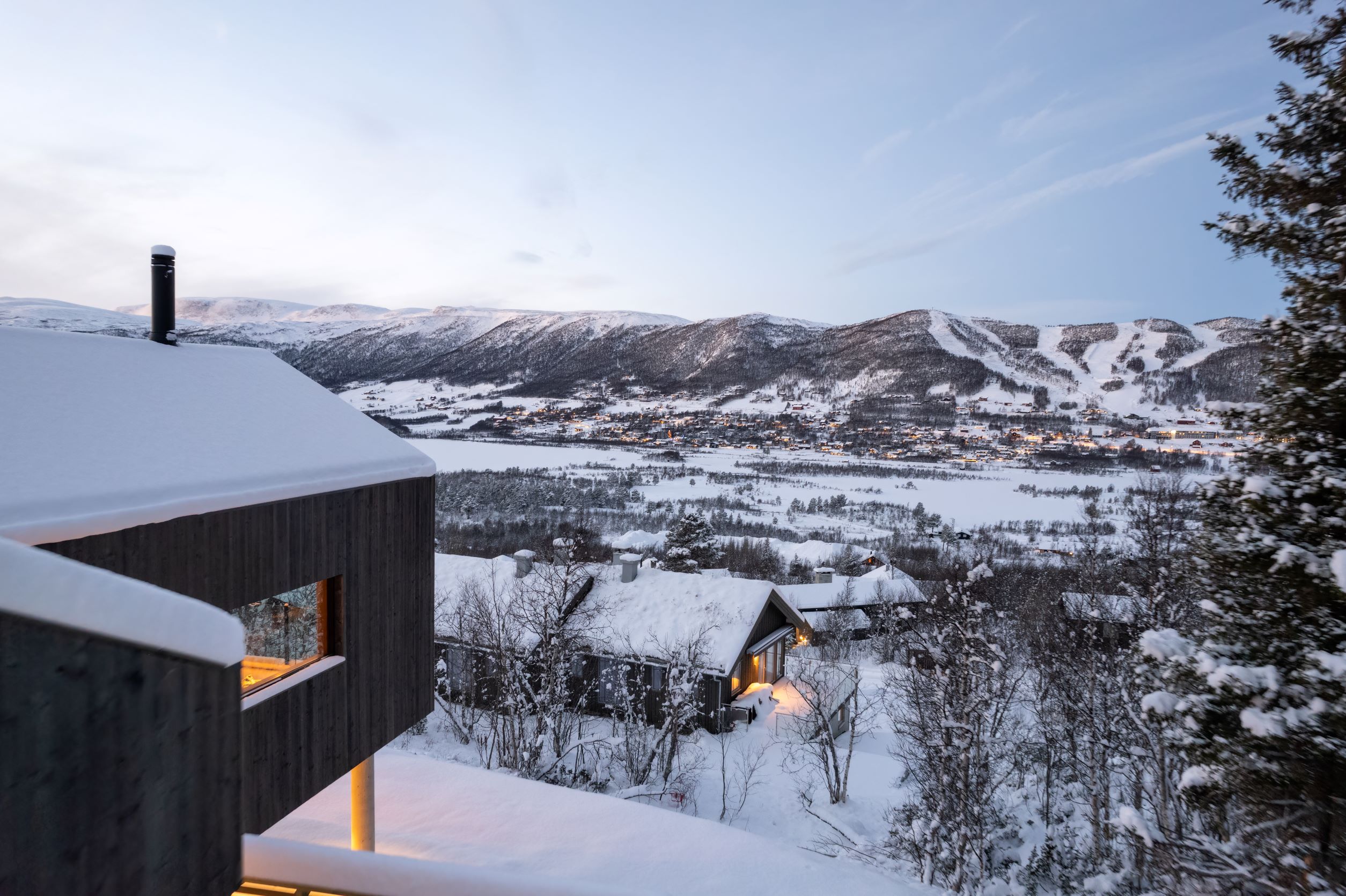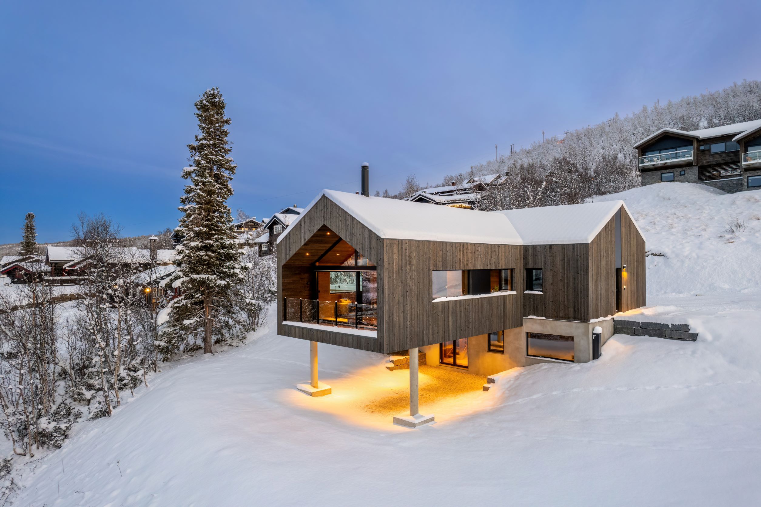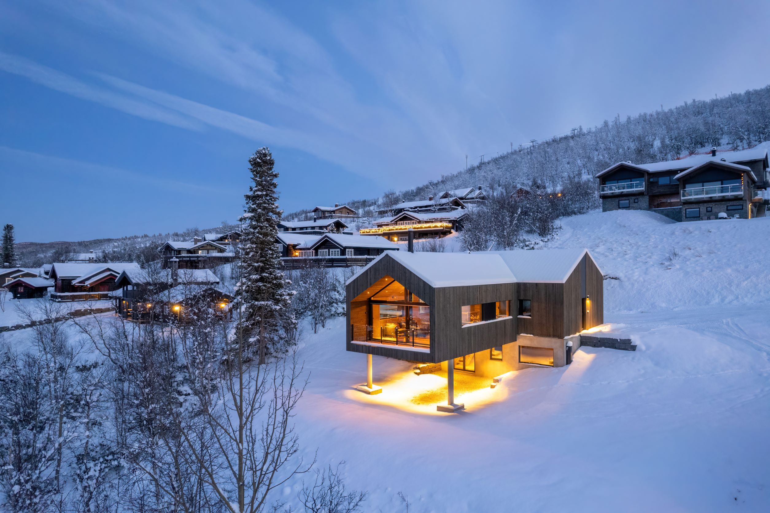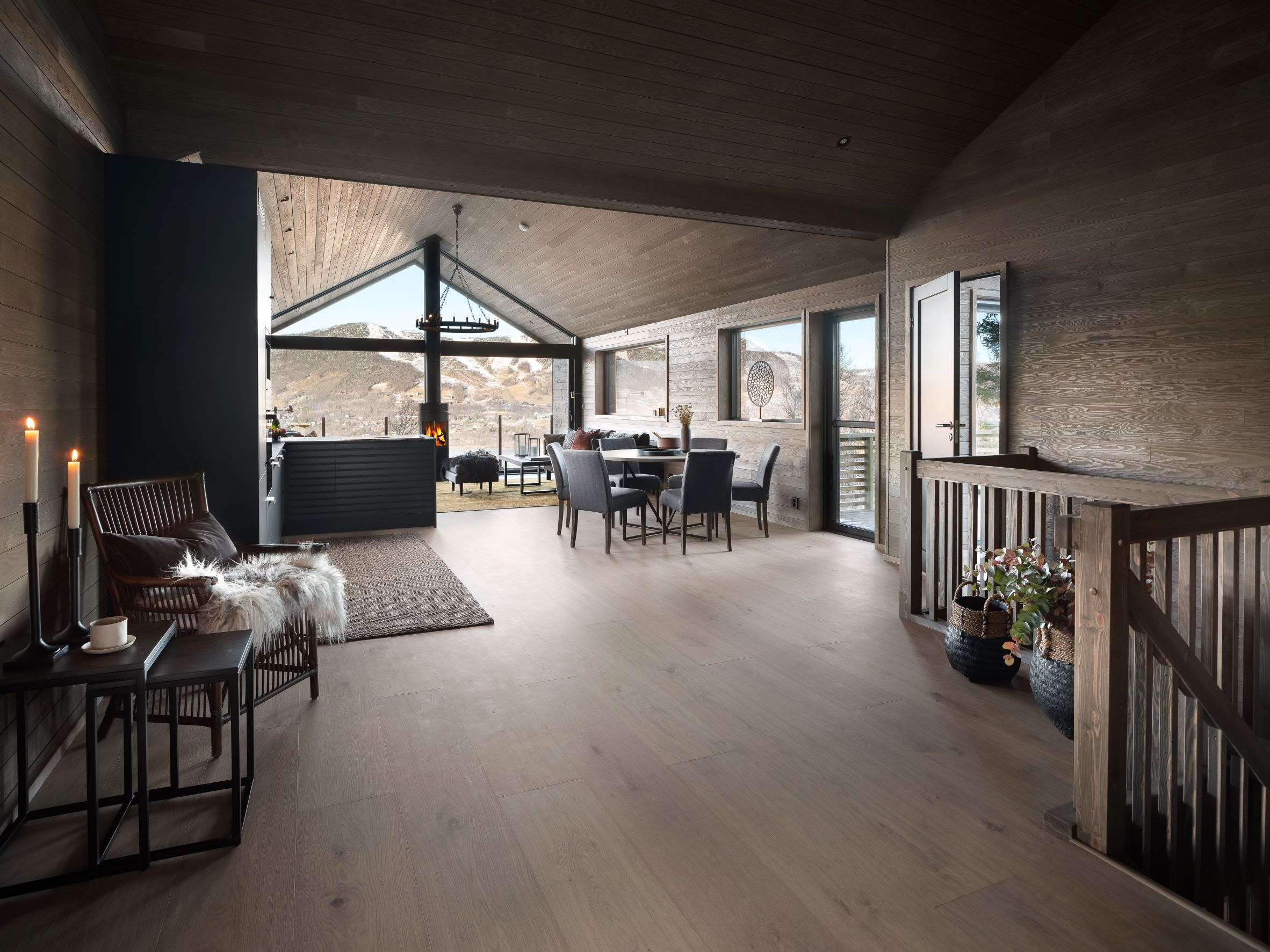 Vestavind har fått sin arkitektoniske form ut fra prinsippet om å ploge seg frem i terrenget, og med sine store vindusflater føles det som du får den vakre naturen rett inn i stua.