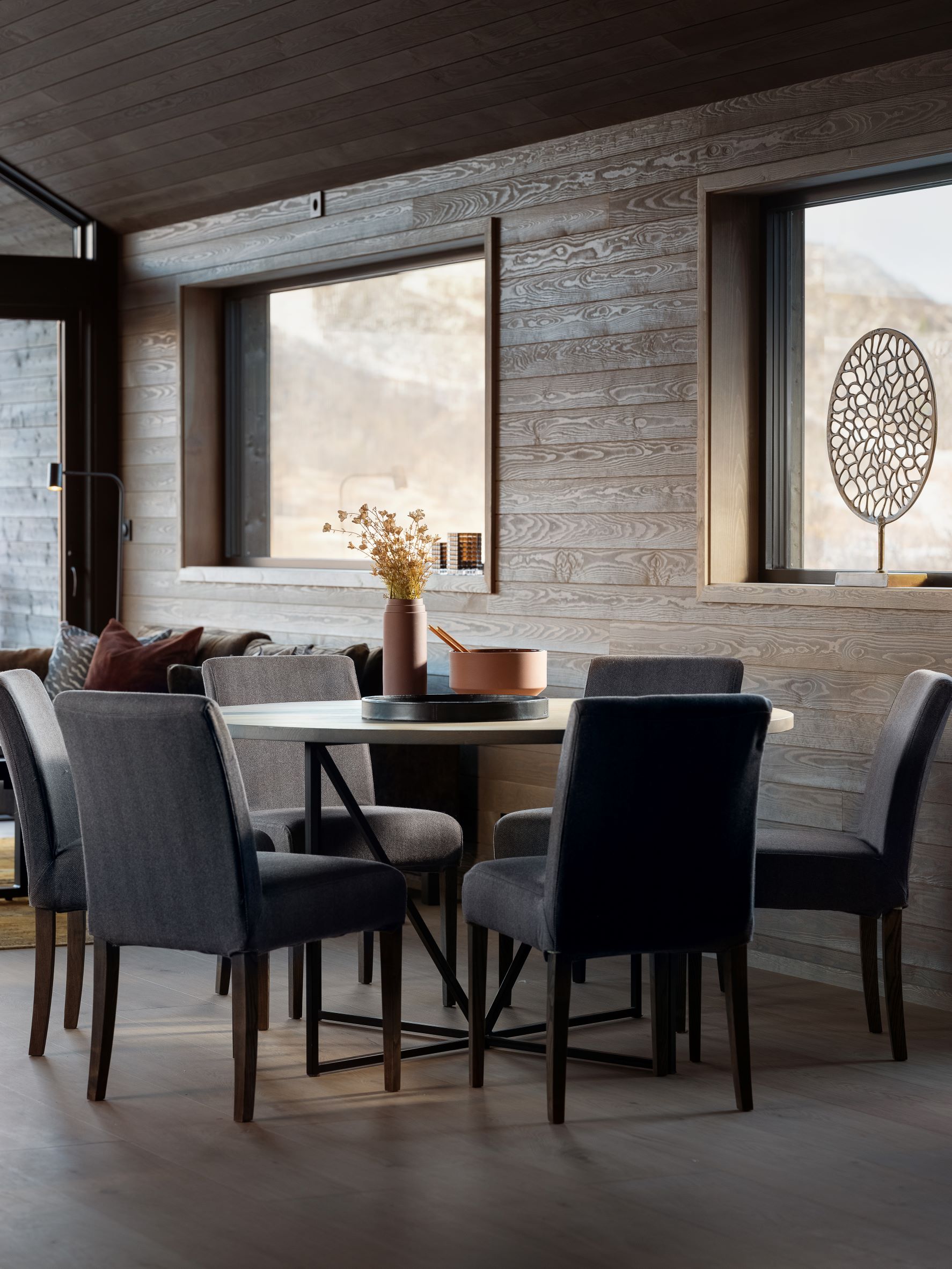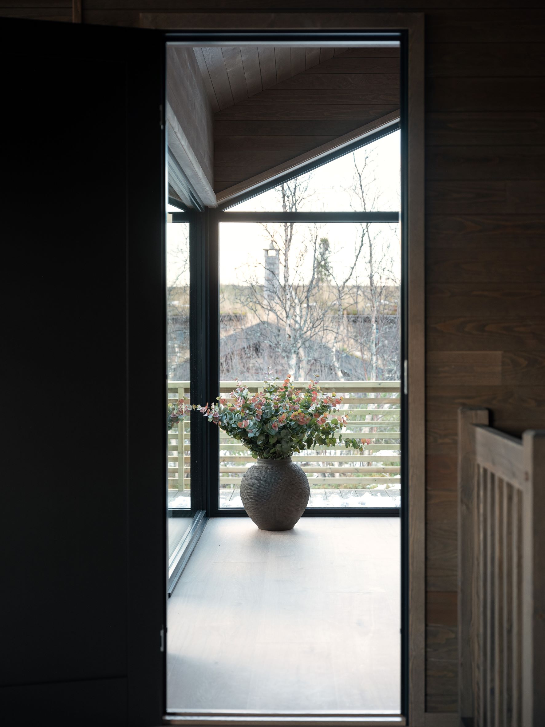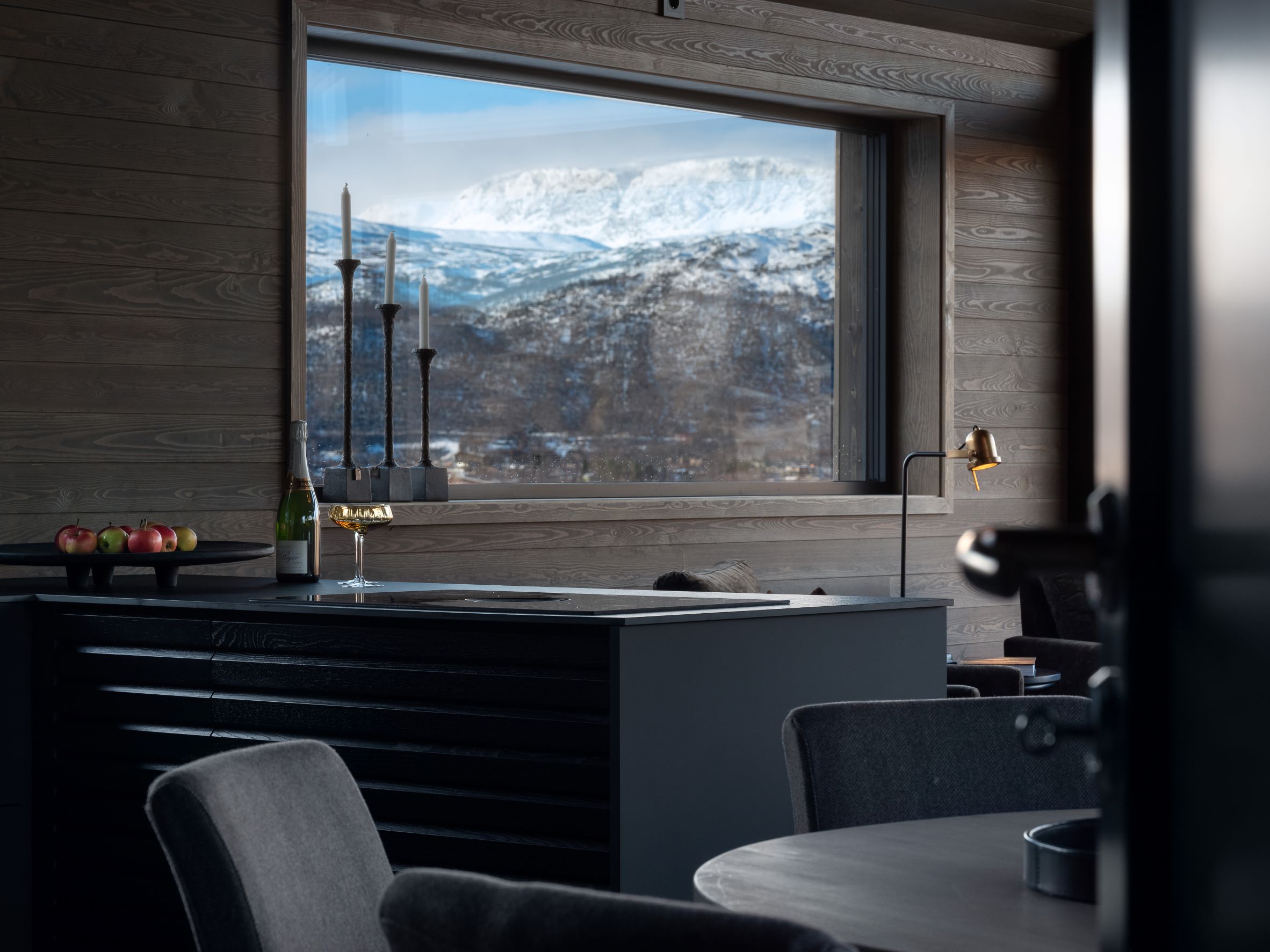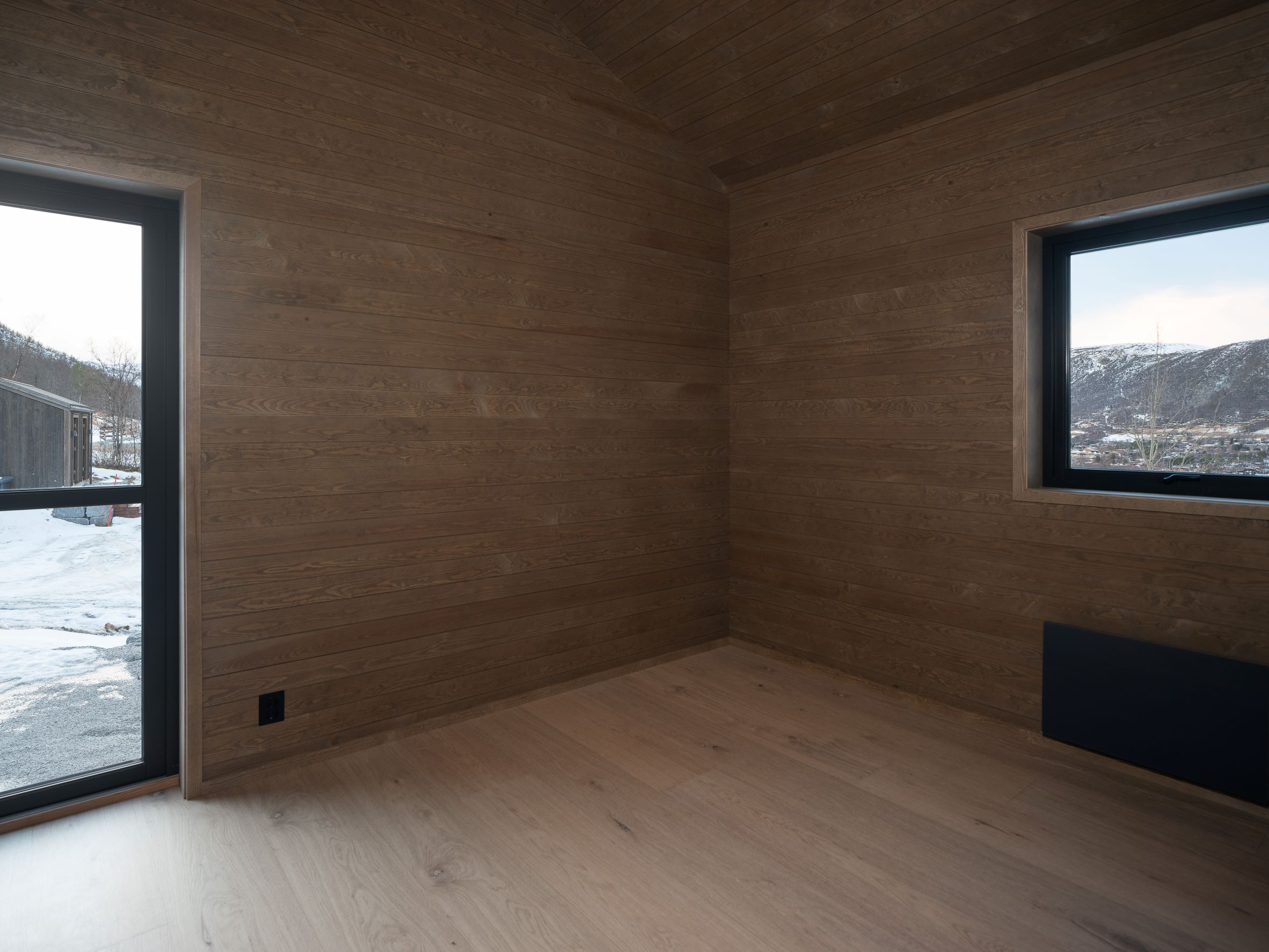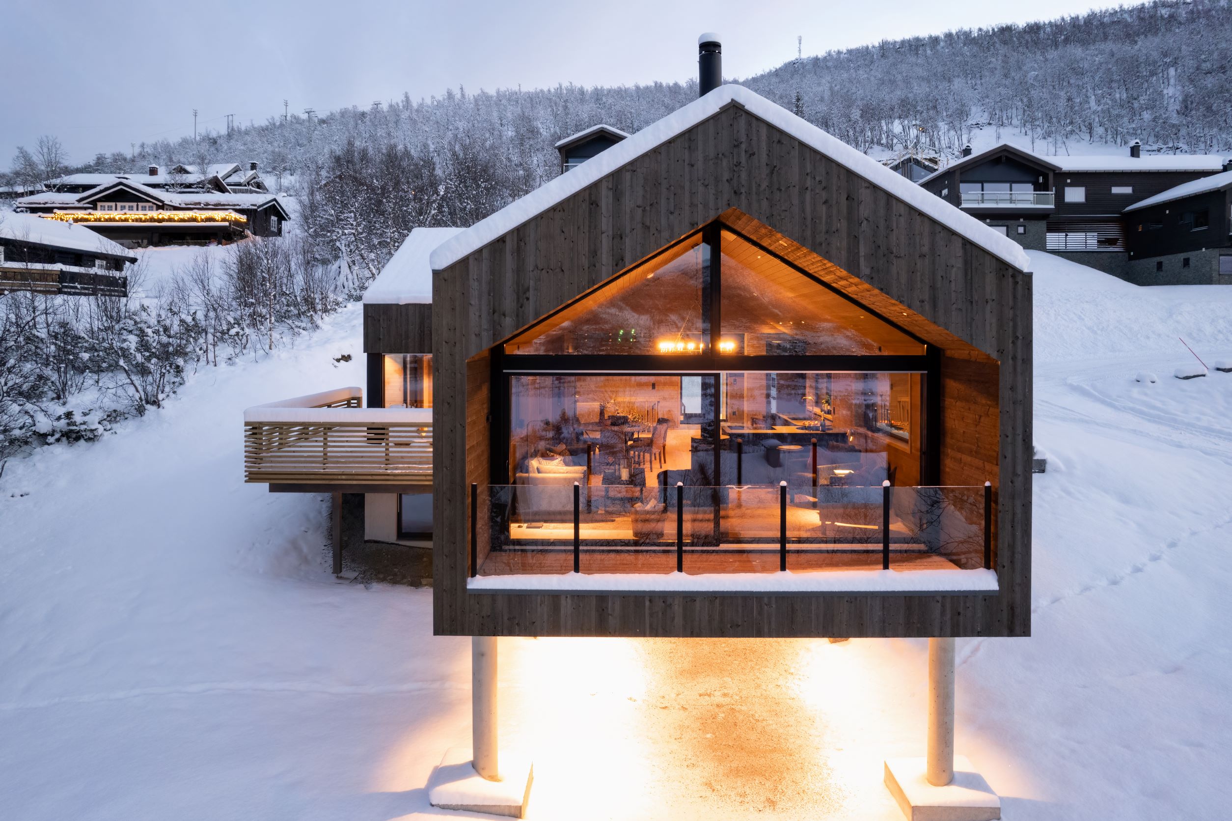 Vestavind har fått sin arkitektoniske form ut fra prinsippet om å ploge seg frem i terrenget, og med sine store vindusflater føles det som du får den vakre naturen rett inn i stua.