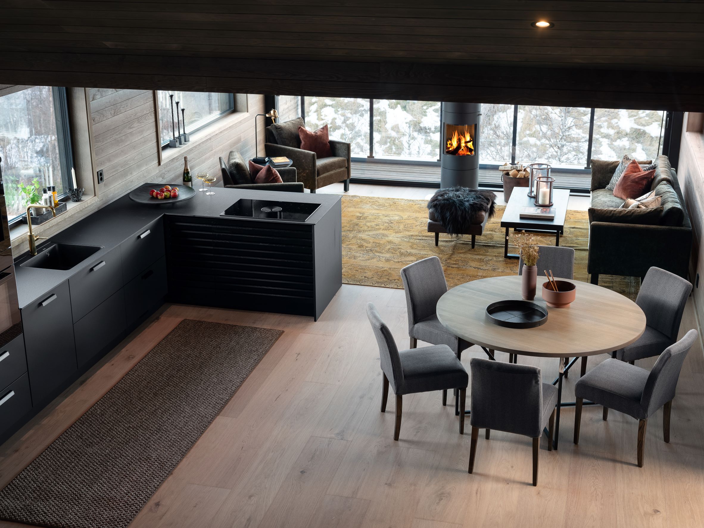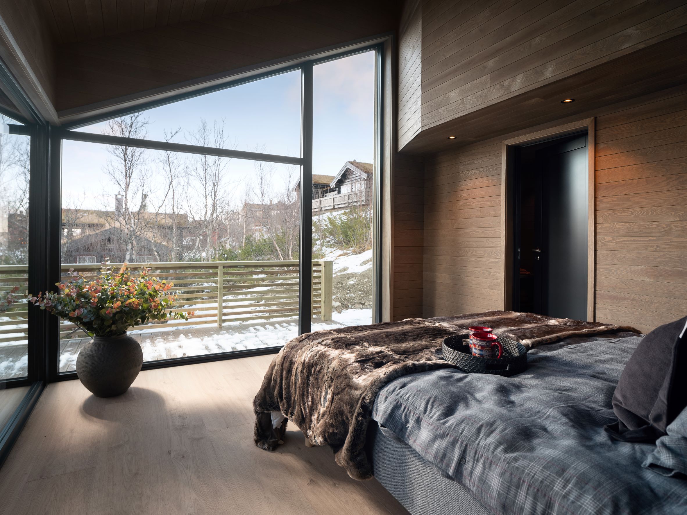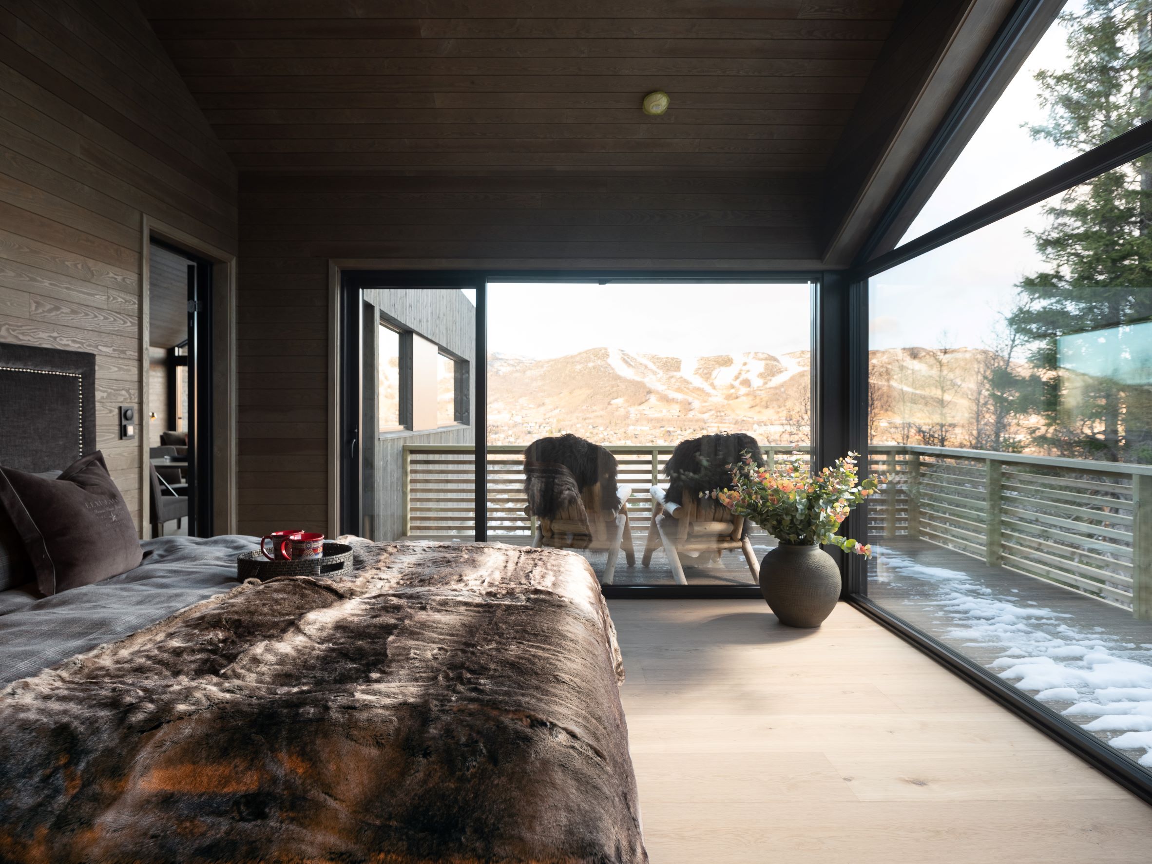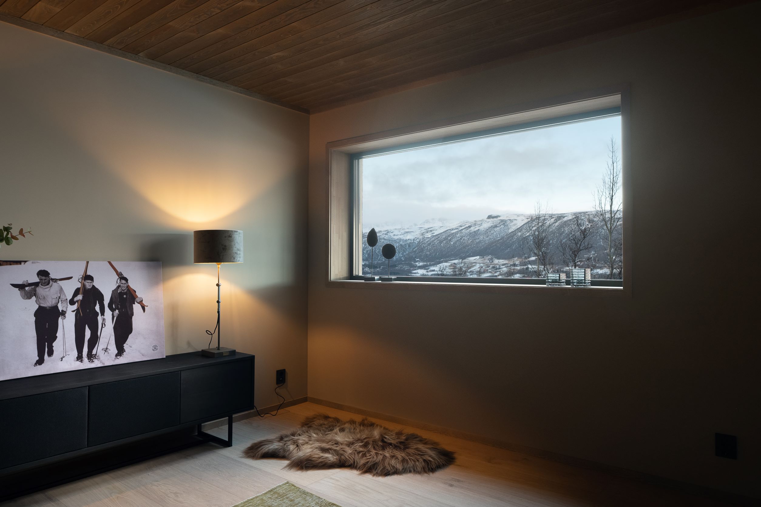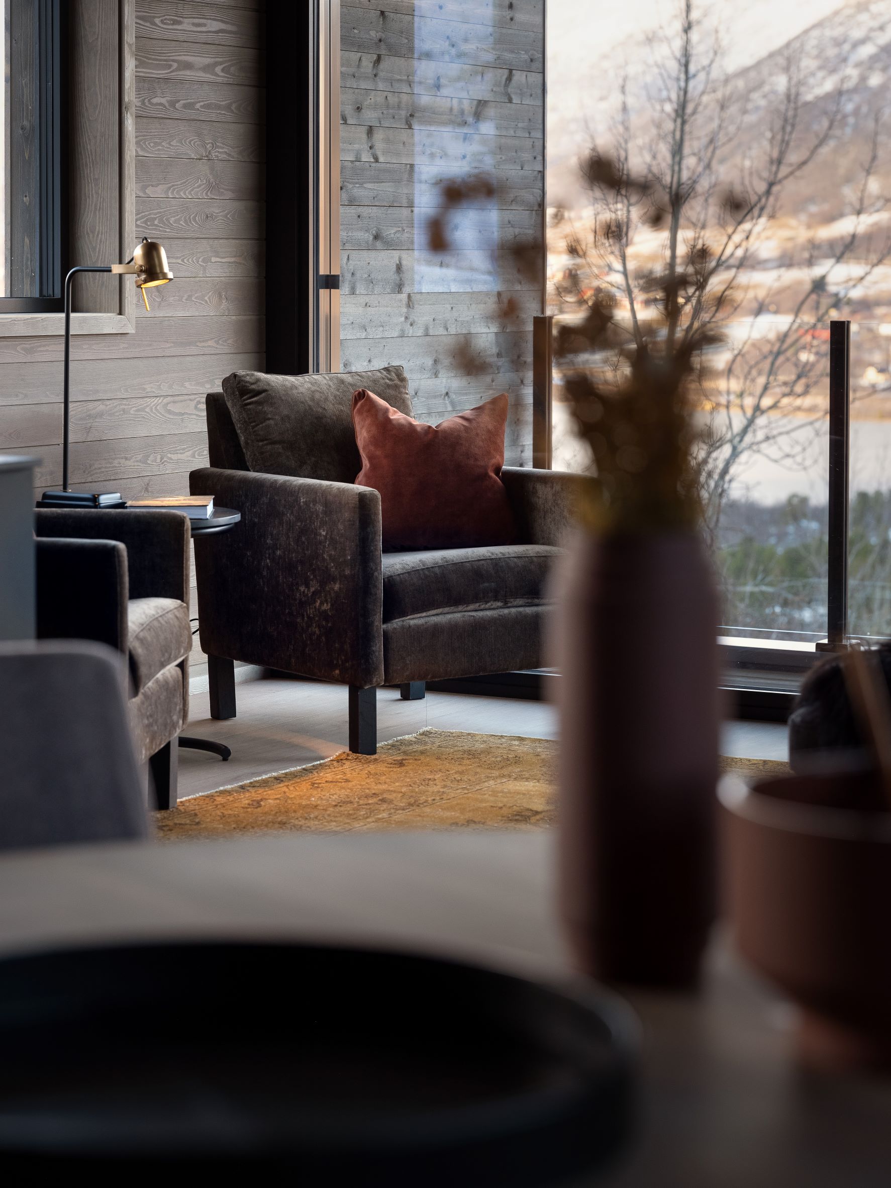 Vestavind har fått sin arkitektoniske form ut fra prinsippet om å ploge seg frem i terrenget, og med sine store vindusflater føles det som du får den vakre naturen rett inn i stua.