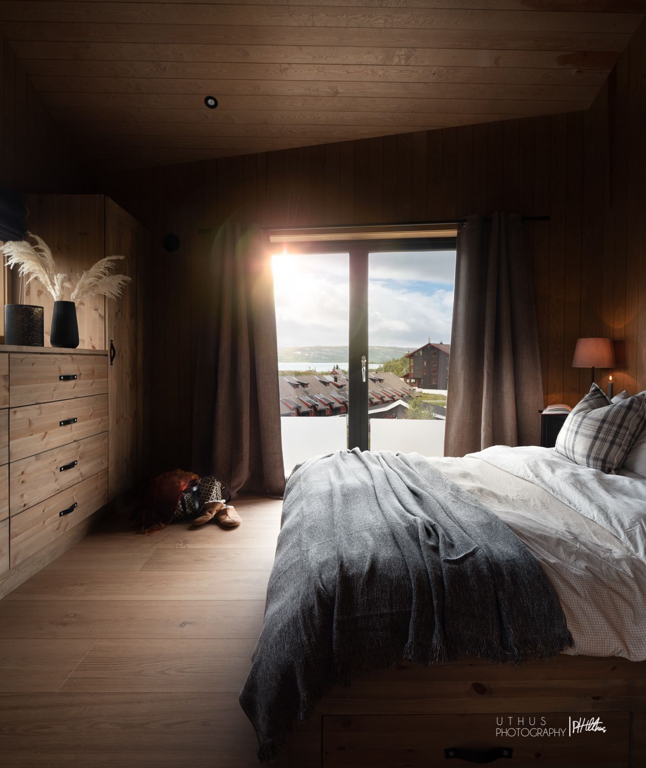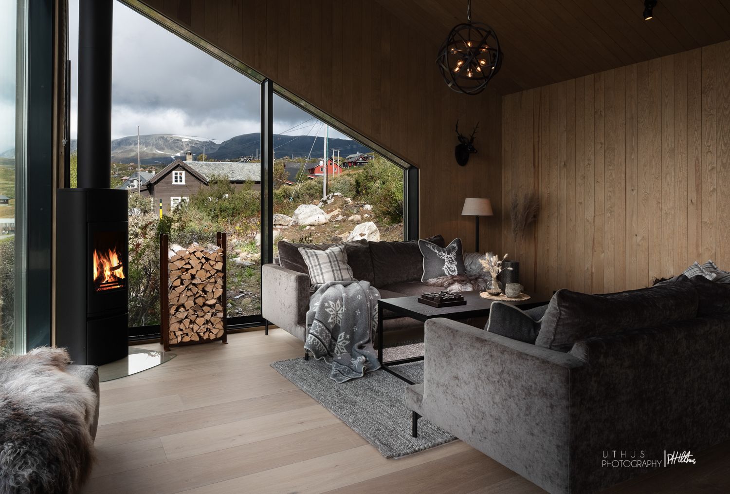 Vestavind har fått sin arkitektoniske form ut fra prinsippet om å ploge seg frem i terrenget, og med sine store vindusflater føles det som du får den vakre naturen rett inn i stua.