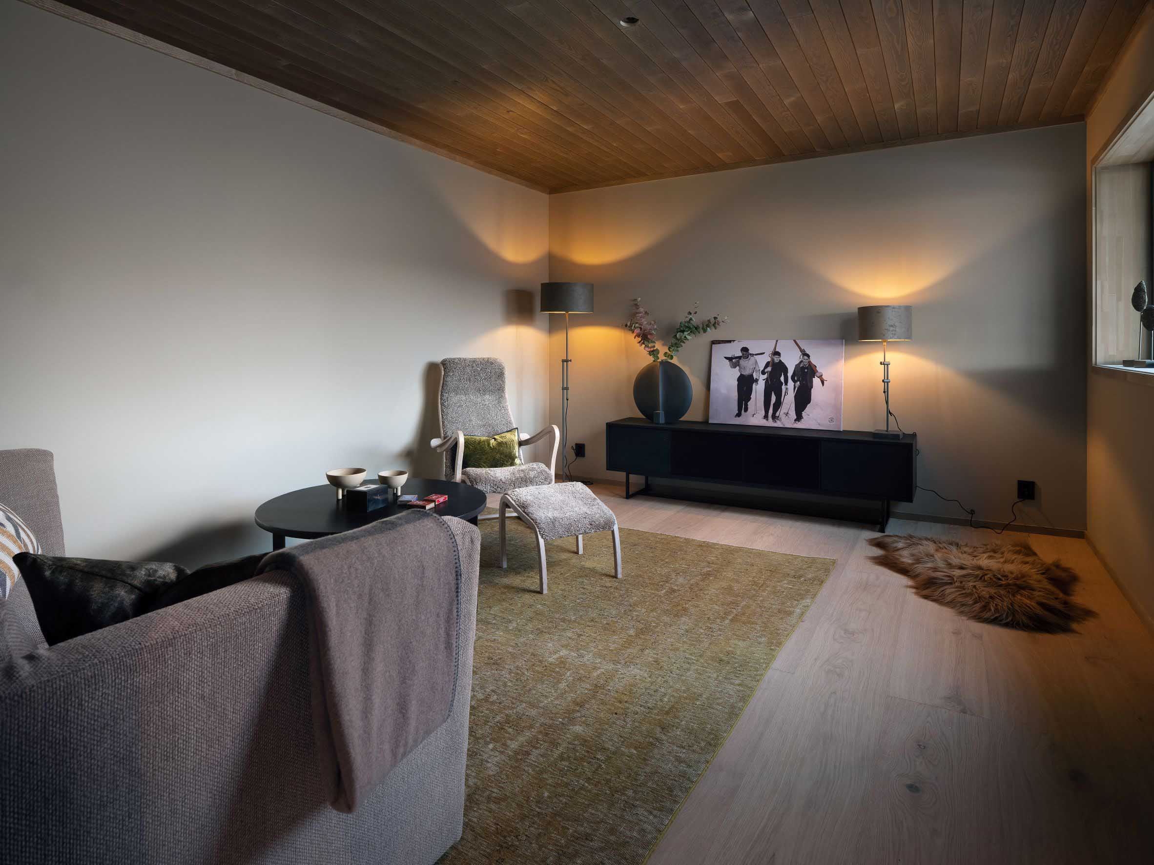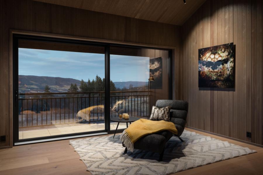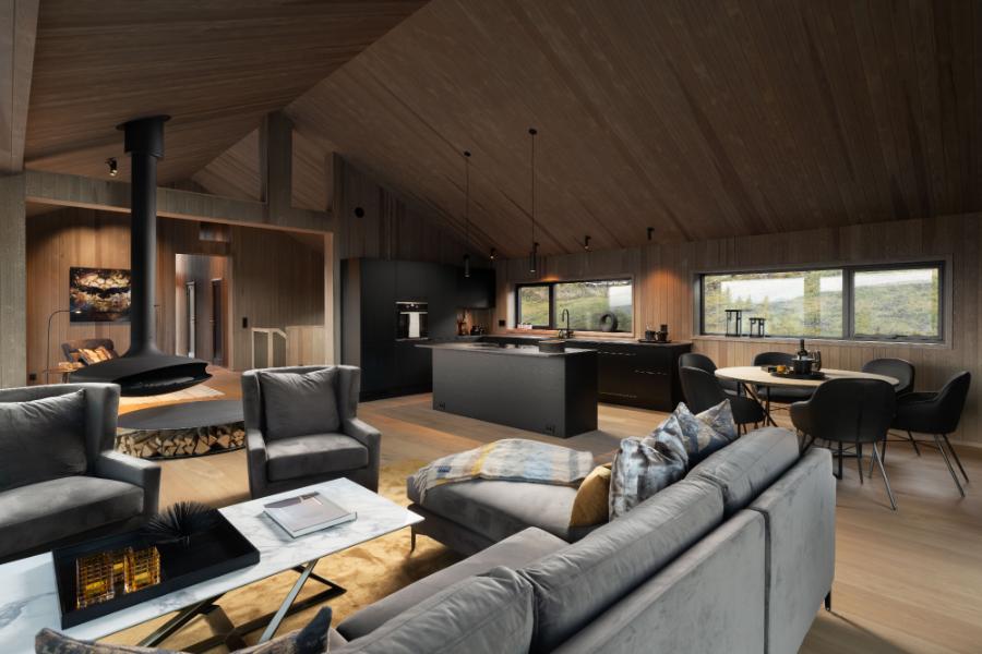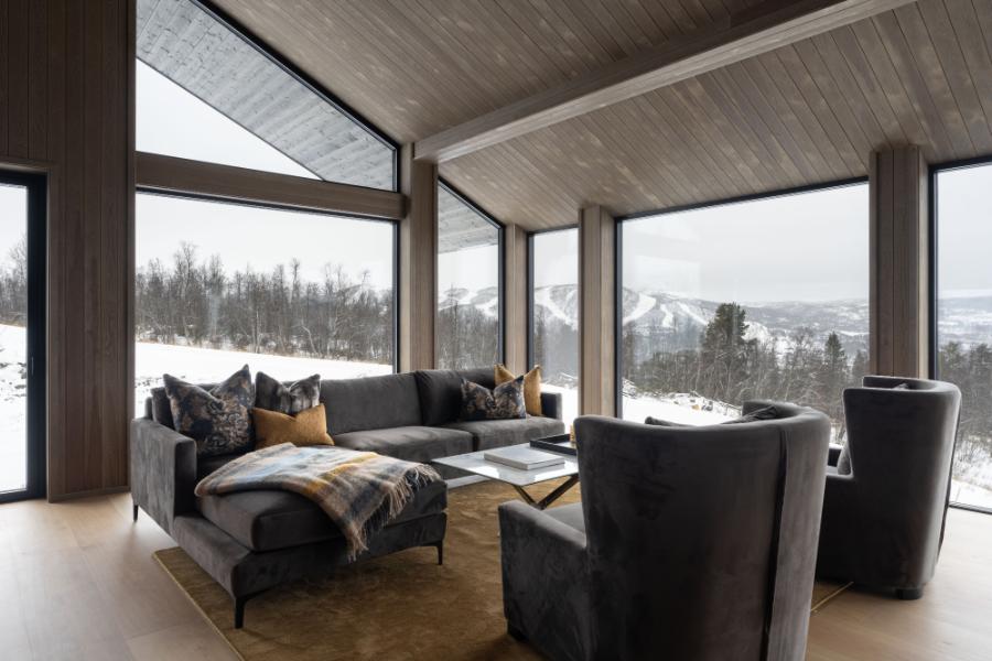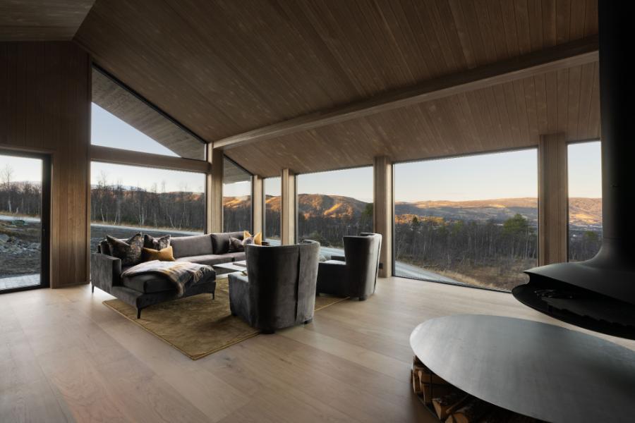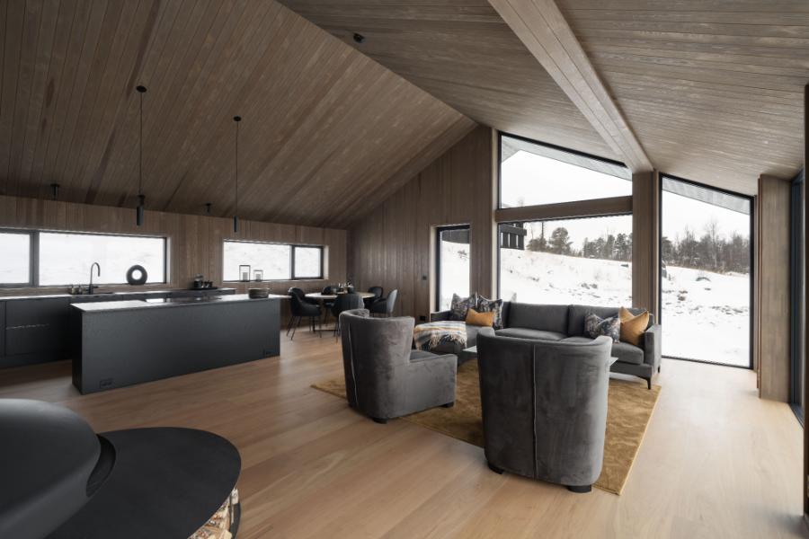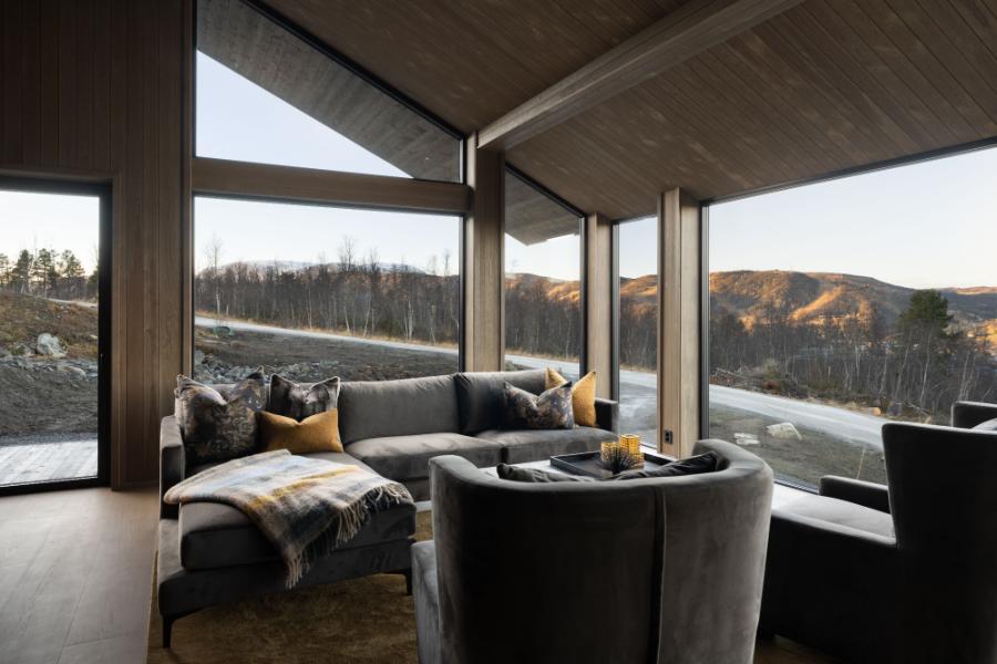 Vestavind har fått sin arkitektoniske form ut fra prinsippet om å ploge seg frem i terrenget, og med sine store vindusflater føles det som du får den vakre naturen rett inn i stua.